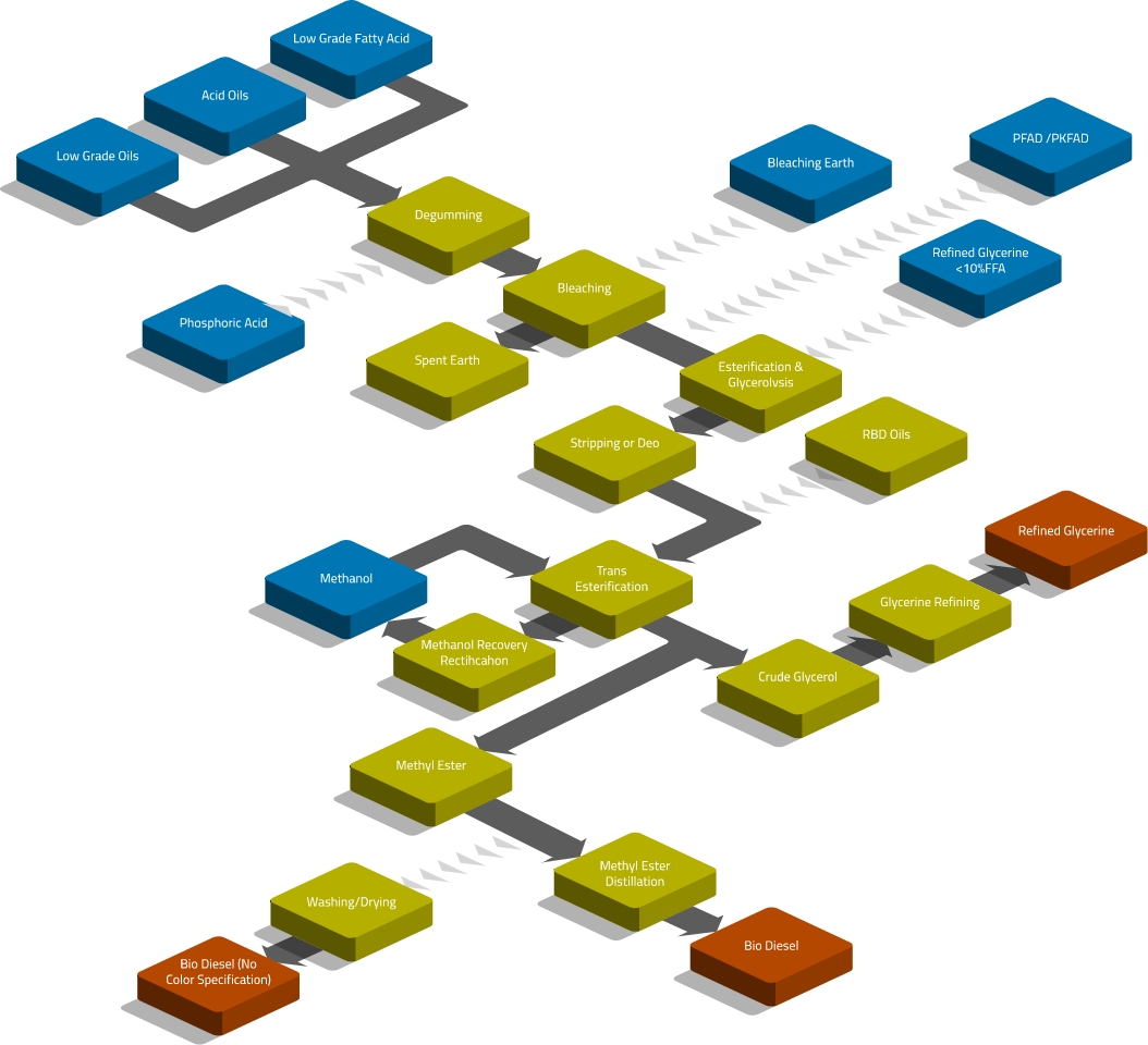 Las plantas de éster metílico de ácidos grasos (Biodiésel) de Mectech ofrecen una solución de combustible alternativa para combatir eficazmente la contaminación del aire en nuestro planeta. El biodiésel ofrece emisiones reducidas, es renovable, fácilmente biodegradable y puede mezclarse sin problemas con los combustibles tradicionales.