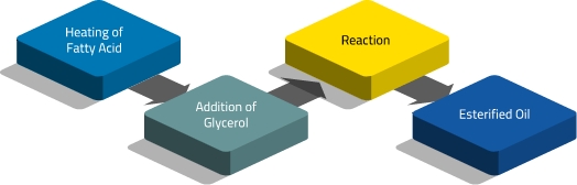 La reacción de glicerólisis es inversa al proceso de hidrólisis. Se lleva a cabo mediante la reacción de los ácidos grasos con el glicerol. Además de los ésteres, el agua también es un producto de la glicerólisis.