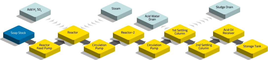 El proceso de separación puede realizarse por lotes o de forma continua, pero teniendo en cuenta el costo de producción y la calidad del aceite ácido, el proceso continuo es más económico que el proceso por lotes.