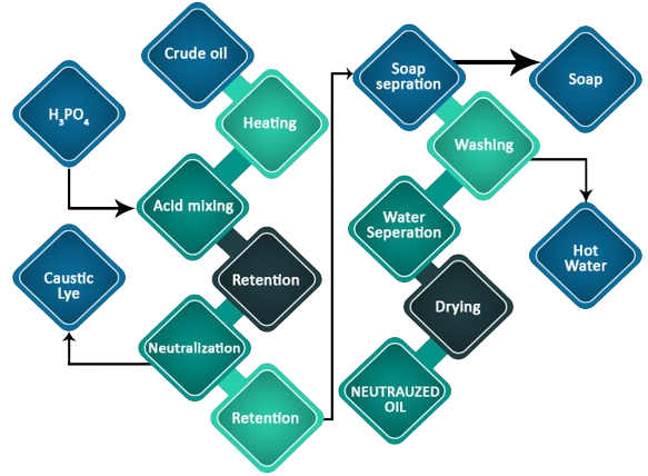 Como se ha indicado anteriormente, el aceite de SOJA extraído con solventes se somete a un proceso de refinado en la refinería de aceite de soja.